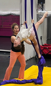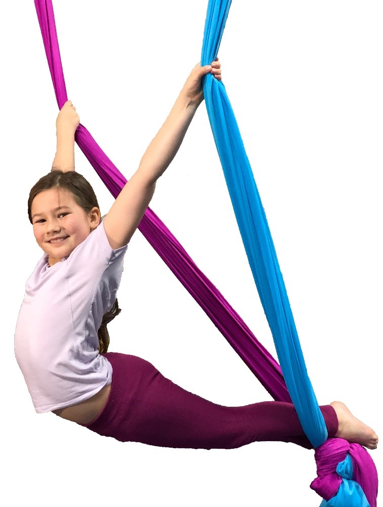 Kids soar on silks & aerial hoop, plus dance, tumble theater games, singing & creative play — all led by caring and safe counselors.